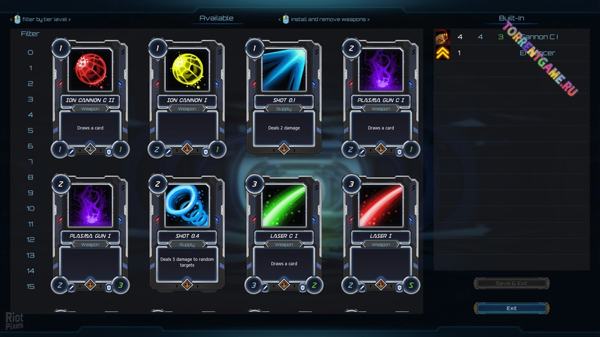 ВООРУЖИТЕСЬ: Ваш корабль не несет полной ответственности за вашу силу в бою. Чтобы вооружиться наиболее эффективно, вам нужно найти чертежи нового оружия, собрать их и создать колоду. Чем больше вы знаете о своем противнике перед боем, тем лучше сможете подобрать себе оружие.