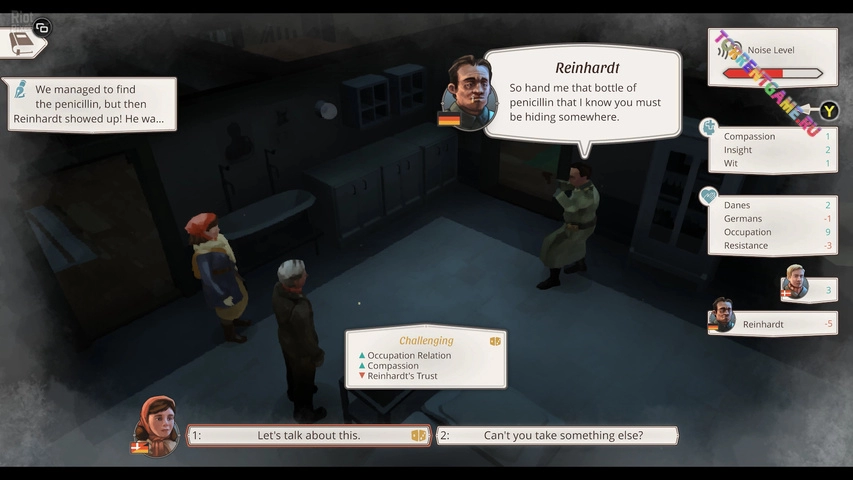 Каждая дилемма сложна, и каждое решение имеет решающее значение во времена потрясений, таких как война. Делайте свой выбор с помощью сочетания изучения, диалога и управления ресурсами и взаимоотношениями. Ваши личностные качества - это ваши навыки в этой уникальной повествовательной RPG-lite, и ваша связь с другими людьми также определяет, как будет разворачиваться история.