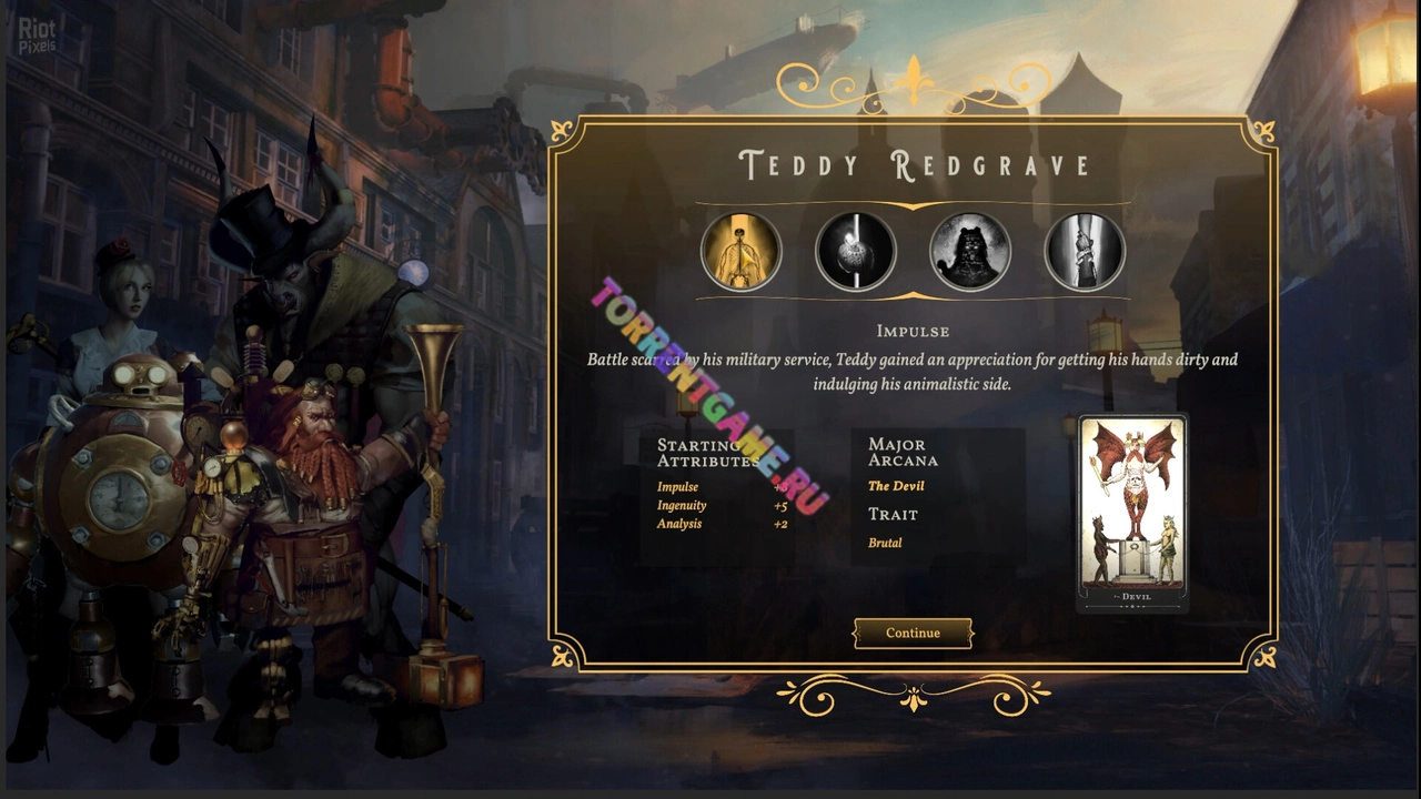Исследуйте открытый мир в этой викторианской стимпанковой cRPG. Играйте за трех персонажей с переплетающимися историями. Исследуйте, взаимодействуйте и предпринимайте действия, чтобы оставить свой след в мире и его обитателях. Здесь нет случайных очков характеристик, используйте свои навыки, чтобы повысить их уровень, и доверьте свою судьбу нашей системе шансов на картах Таро.