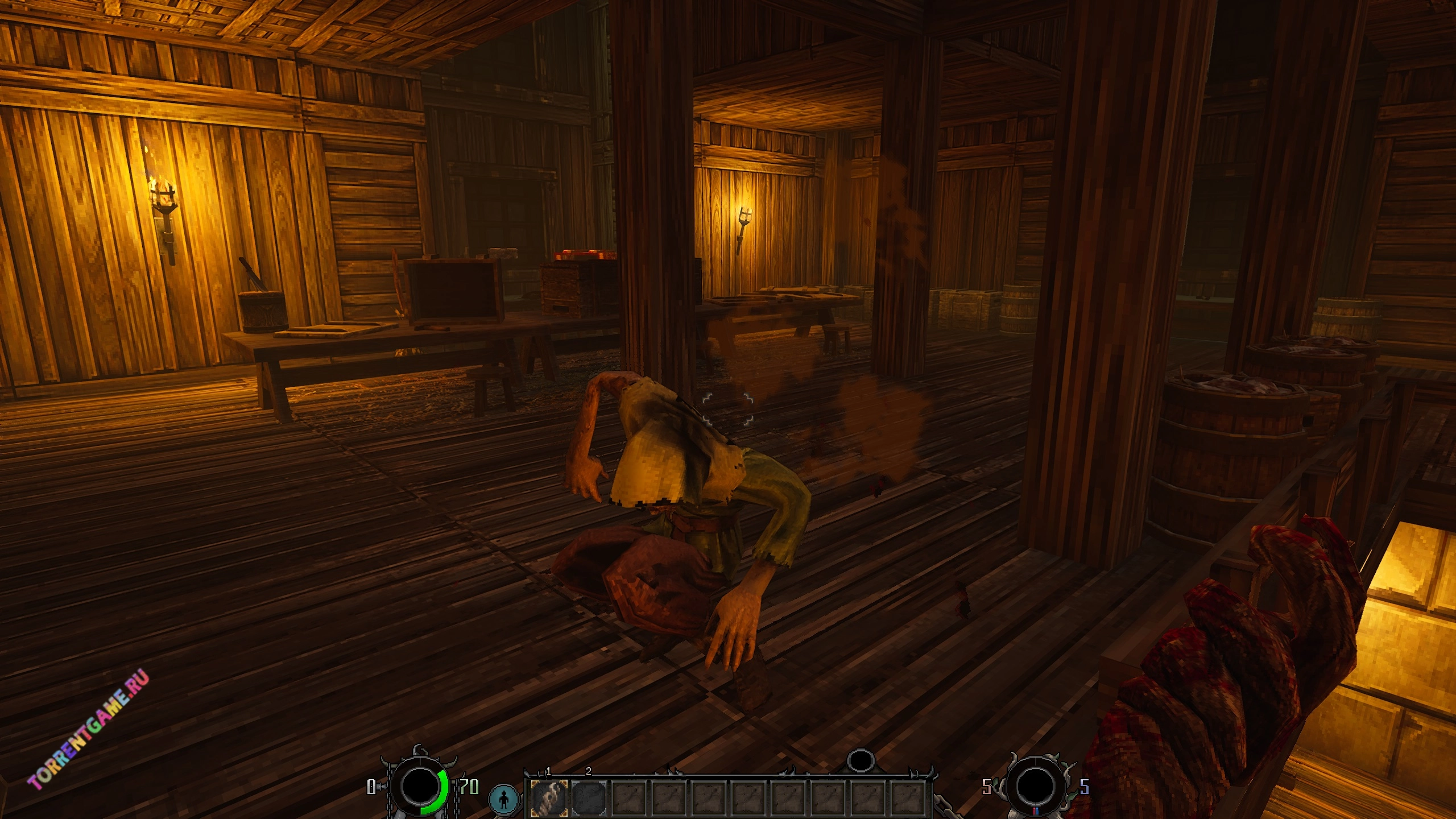 Добытое оружие можно совершенствовать, прибегая к услугам кузнецов и алхимиков.