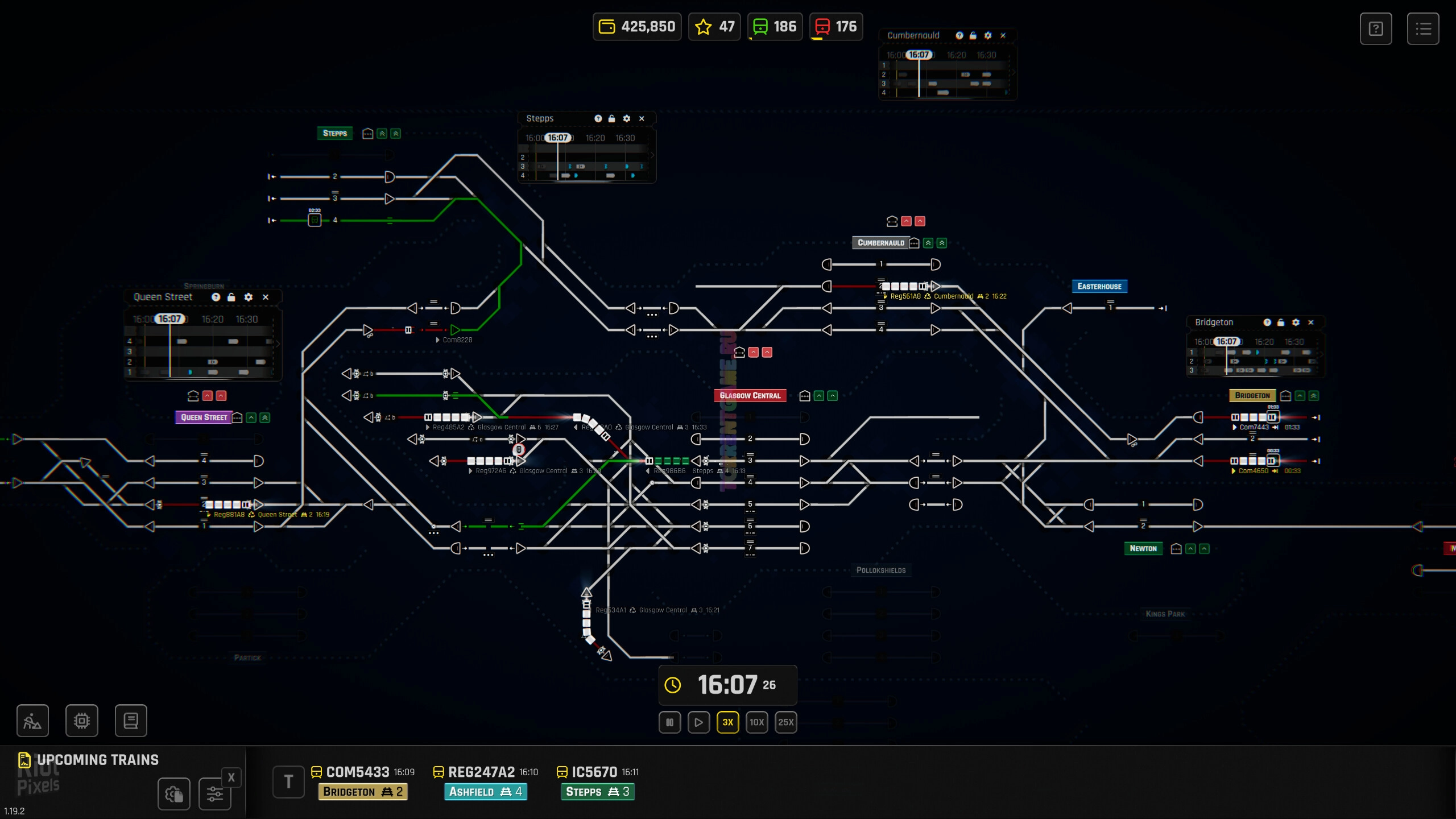 Ваша сеть, ваши правила: Свобода за вами: создавайте с нуля, постепенно открывая технологии и ресурсы для создания вашей идеальной железнодорожной сети на картах реальных городов. Испытайте удовлетворение от идеального расписания, обеспечивающего плавное и эффективное движение поездов, что отражает вашу стратегическую проницательность. Или, может быть, вас привлекают острые ощущения от напряженных, зависящих от времени сценариев, где ключевым является быстрое принятие решений, а волна за волной проблем держат вас в напряжении.