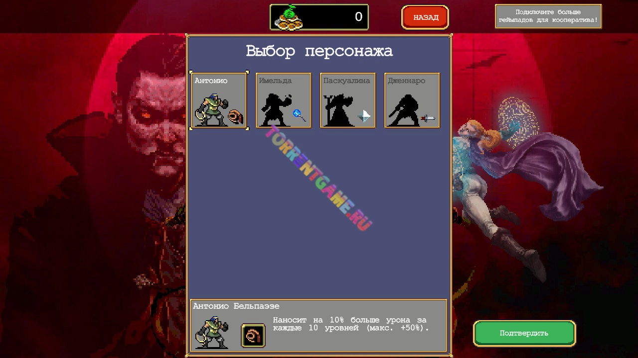 Пачками косить порождений ночи и дожить до рассвета! Vampire Survivors — казуальная игра в стиле готического хоррора с элементами упрощённого roguelikeа. Здесь каждое ваше решение может вызвать лавину последствий для орд монстров, с которыми вам предстоит столкнуться.