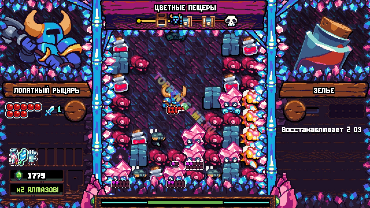 Погрузитесь вместе с Лопатным рыцарем в глубины Карманного подземелья в этом приключенческом квесте-головоломке, непохожем ни на один другой. С помощью вашего таинственного проводника – Загадочного рыцаря – вы будете прорываться через кипы врагов, добывать снаряжение и сражаться с боссами – новыми и уже знакомыми. Отправьтесь в приключение, полное бесконечных поворотов и интриг, испытайте себя в роли любимых героев и бросьте вызов друзьям в Shovel Knight Pocket Dungeon!