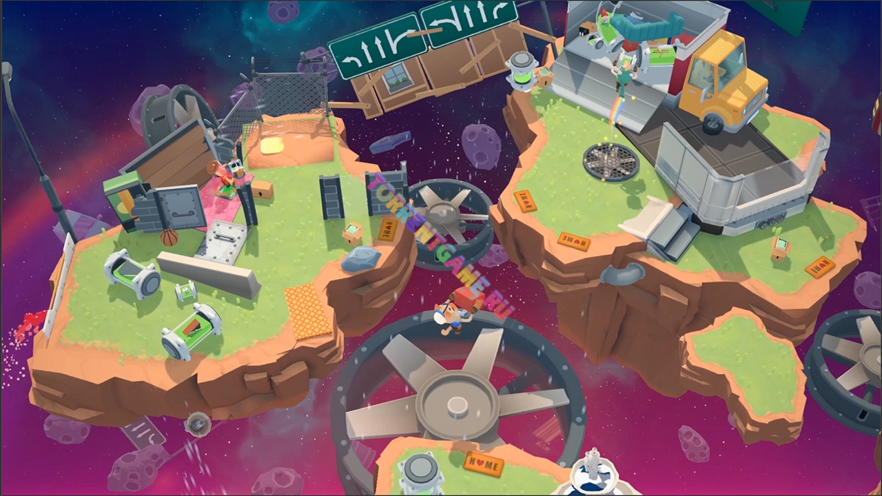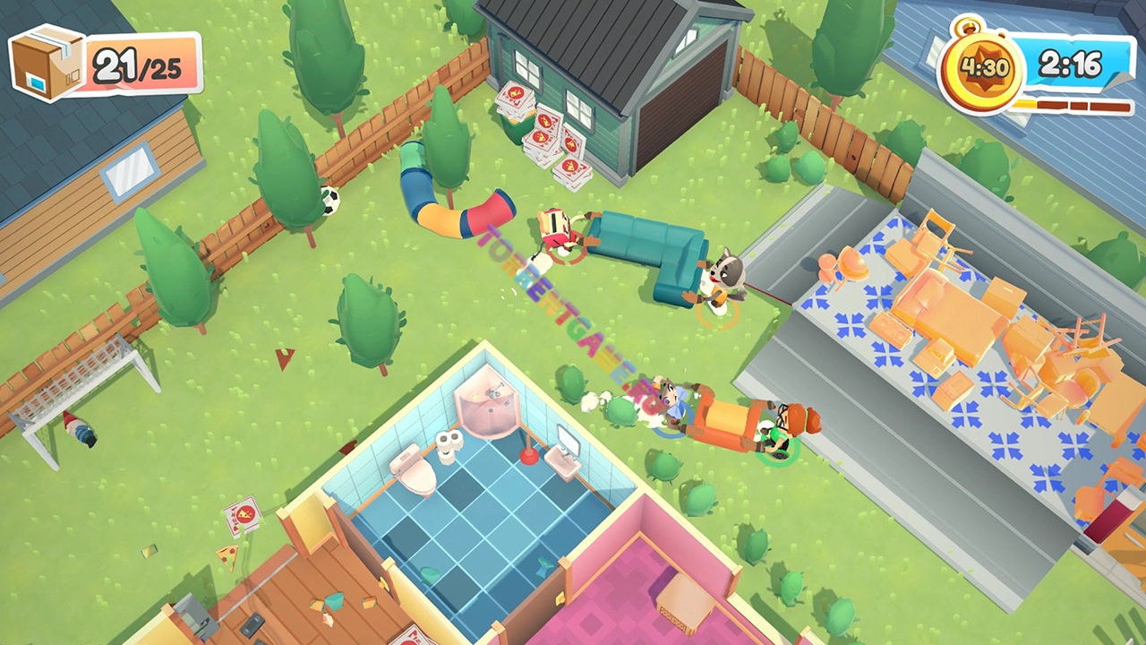 Совместная игра! Насладитесь сюжетом в одиночку в качестве независимого подрядчика или объединитесь с друзьями. До четырех игроков могут обсуждать, как лучше передвигать диван, не поднимаясь с дивана. Испытайте и себя, и свою дружбу! Хватайте друзей и станьте специалистом по переездам в Moving Out!