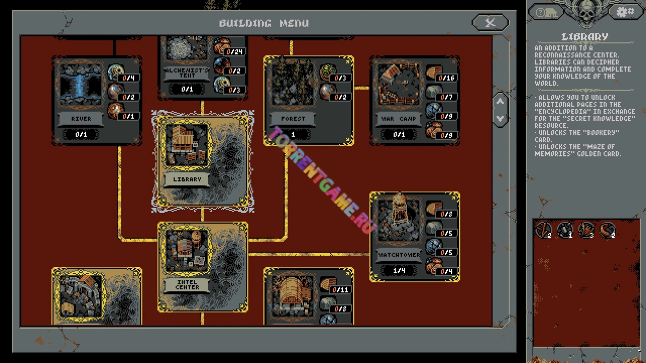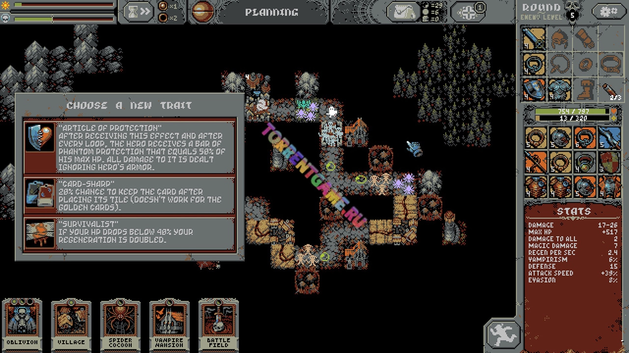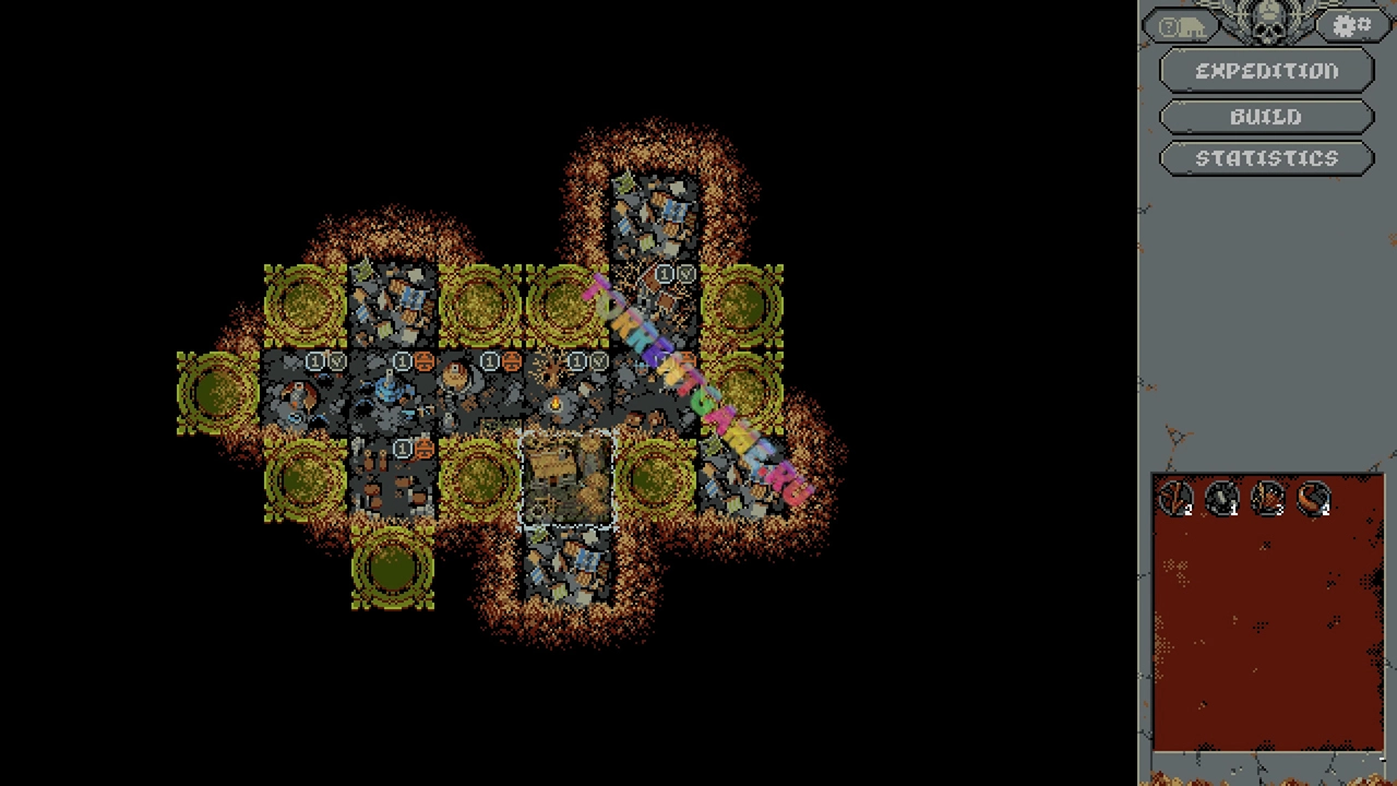 Планируйте ваши действия. Продумывайте размещение зданий, элементов ландшафта и карт врагов, и каждая тропа будет по-своему опасной. Ищите баланс между картами, чтобы повысить шансы на выживание, и не забывайте добывать ценные трофеи и ресурсы для лагеря.