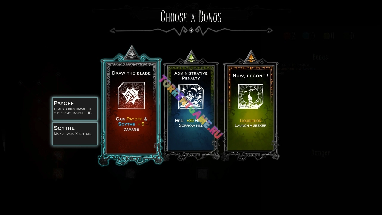 Смерть не знает отдыха: как известно, Смерть по сути своей бессмертен. Накопленный опыт поможет ему вбить здравый смысл в сотрудников и начальников каждого отдела ЗАО «Смерть»... а потом еще раз. И еще раз. После каждого захода вы получите оценку эффективности, а вместе с ней — любопытные предметы и улучшения, с которыми будет проще продвинуться дальше.