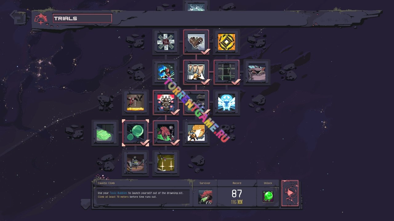 Оттачивайте свои навыки и способности, открывайте новых выживших и постепенно улучшайте свои результаты! Откройте древние секреты, похороненные в глубинах Петрикора V. Загляните под каждый камень, бревно и Гап, чтобы найти новые способы игры!