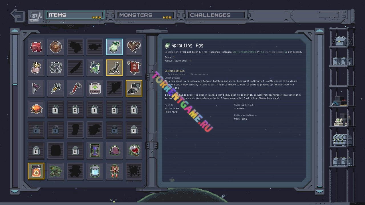 Пробивайтесь к поверхности, находя по пути ценные грузы. Эти предметы позволят вам быстрее двигаться, наносить больше урона или прыгать чуть выше. Особо мощные предметы дают особо мощные бонусы. Укулеле, например, своей музыкой заряжает ваши атаки электричеством. Любите взрывы? Отыщите Блистающую махину, и все ваши атаки превратятся в мощный шквал взрывов. Красота заключается в тех непредсказуемых сочетаниях, которые вы создаёте. Взрывная цепная молния — это только начало вашего безумного шедевра!