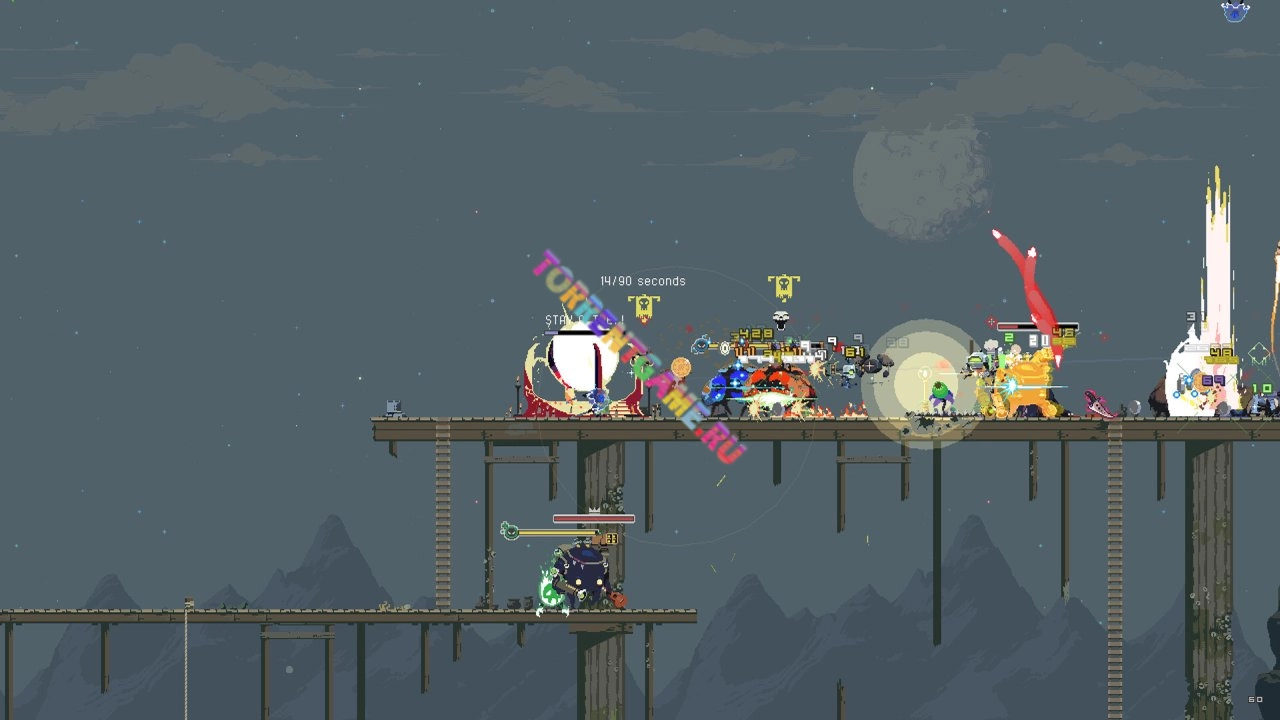 Спуститесь на поверхность в одиночку или со своей командой! Выбирайте выживших, которые дополняют друг друга — или просто берите тех, у кого больше пушки (спойлер: у погрузчика). В совместной игре локально могут участвовать до 4 игроков. Risk of Rain Returns предлагает улучшенный многопользовательский режим: ничто не помешает вам сражаться с многочисленными монстрами Петрикора V.