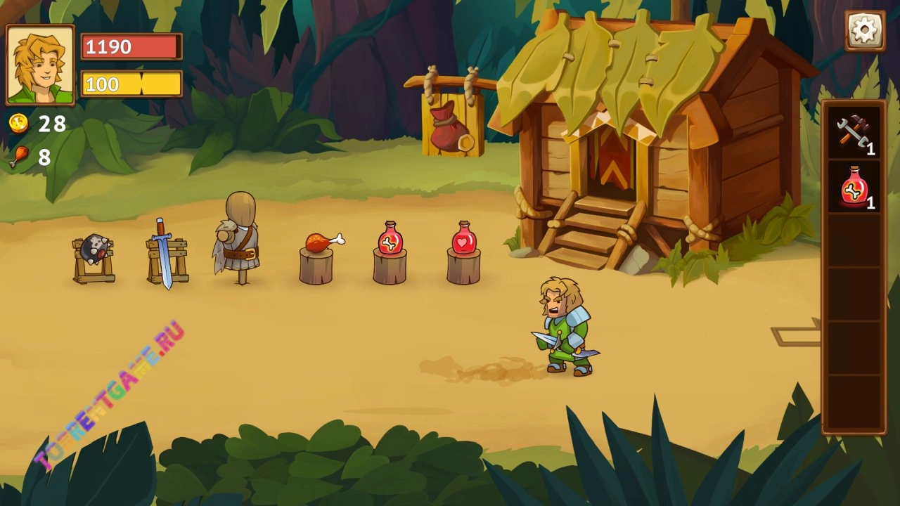 Побеждая в битвах, вы получите множество разнообразной экипировки: мечи, топоры, копья, посохи, арбалеты, бомбы. А значит каждый раз вы создадите рыцаря с особым стилем боя. Одолейте босса, получите награду и потратьте ее на улучшение своего замка перед новой охотой. Бесконечное приключение: более сотни случайных событий сформируют миллионы историй.