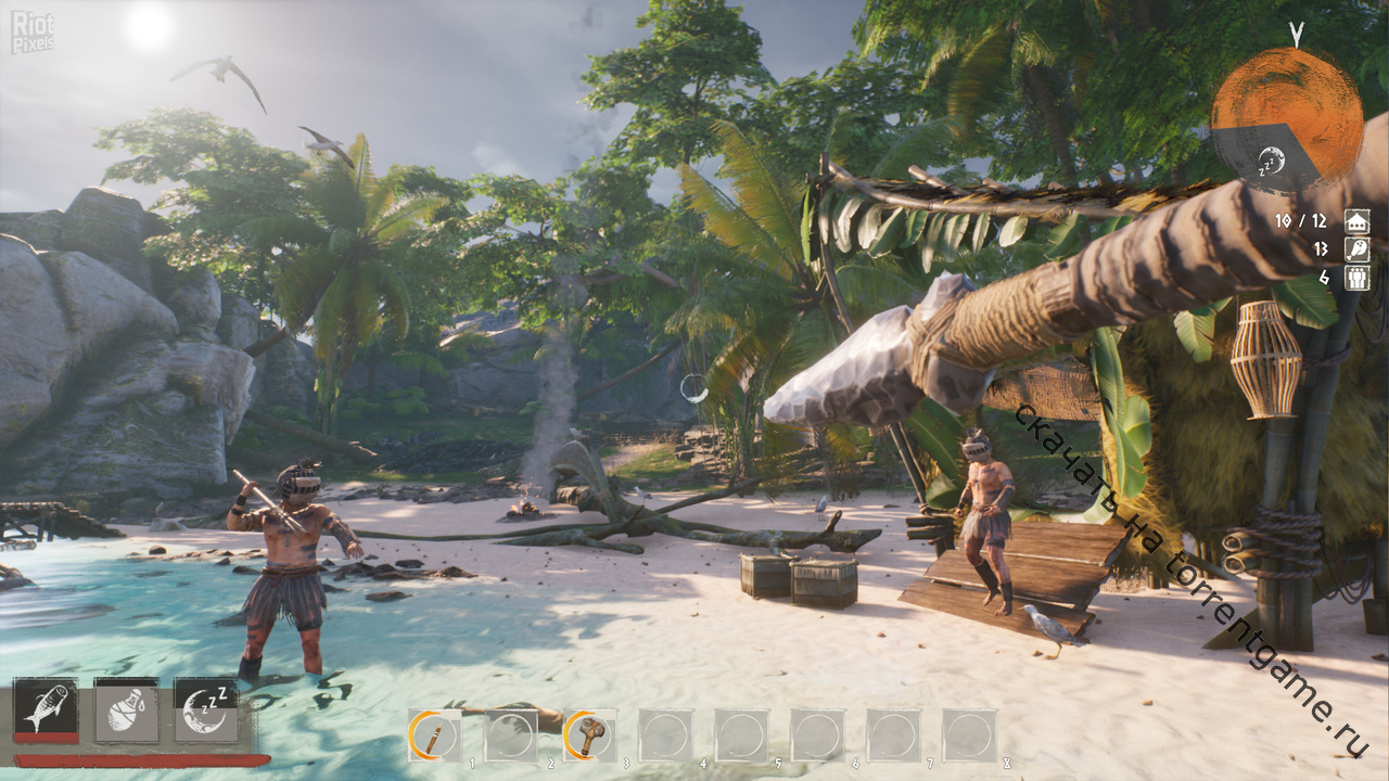 Создайте набор инструментов для своего племени и покоряйте дикие земли. Ножи, топоры и другие предметы помогут добыть необходимые ресурсы. Они могут оказаться очень полезными при путешествии по дикой местности острова.