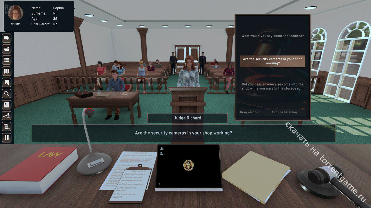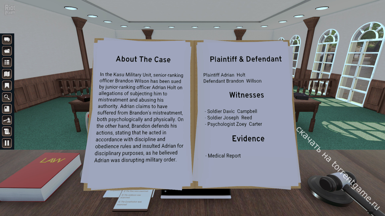 Испытайте уникальный опыт работы в зале суда с реалистичным дизайном сцен и анимацией.
