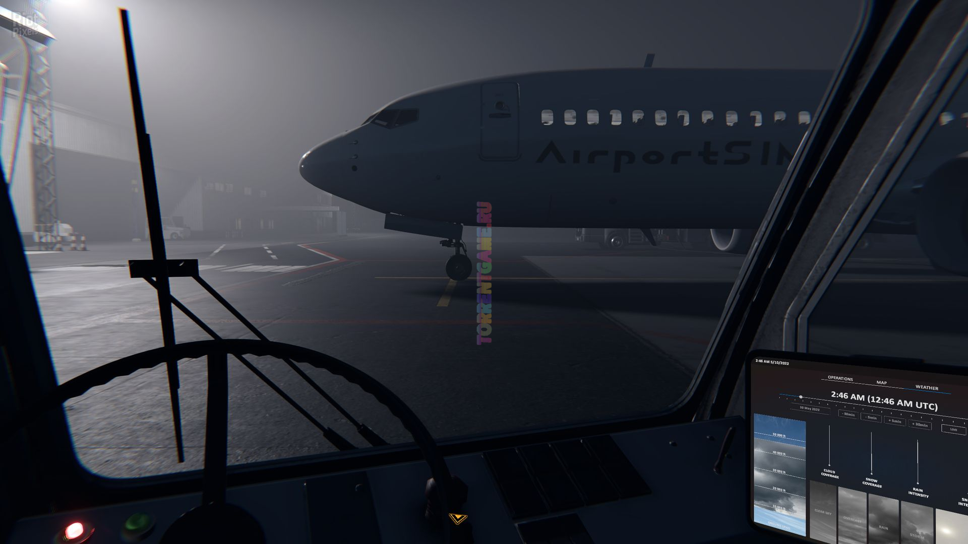 Когда вы работаете в авиационной отрасли, погода играет ключевую роль. Для создания реалистичности мы внедрили подробную метеорологическую систему, позволяющую отображать погоду в режиме реального времени в сочетании с системой METAR. Конечно, вы также можете выбрать тип погоды, если хотите.