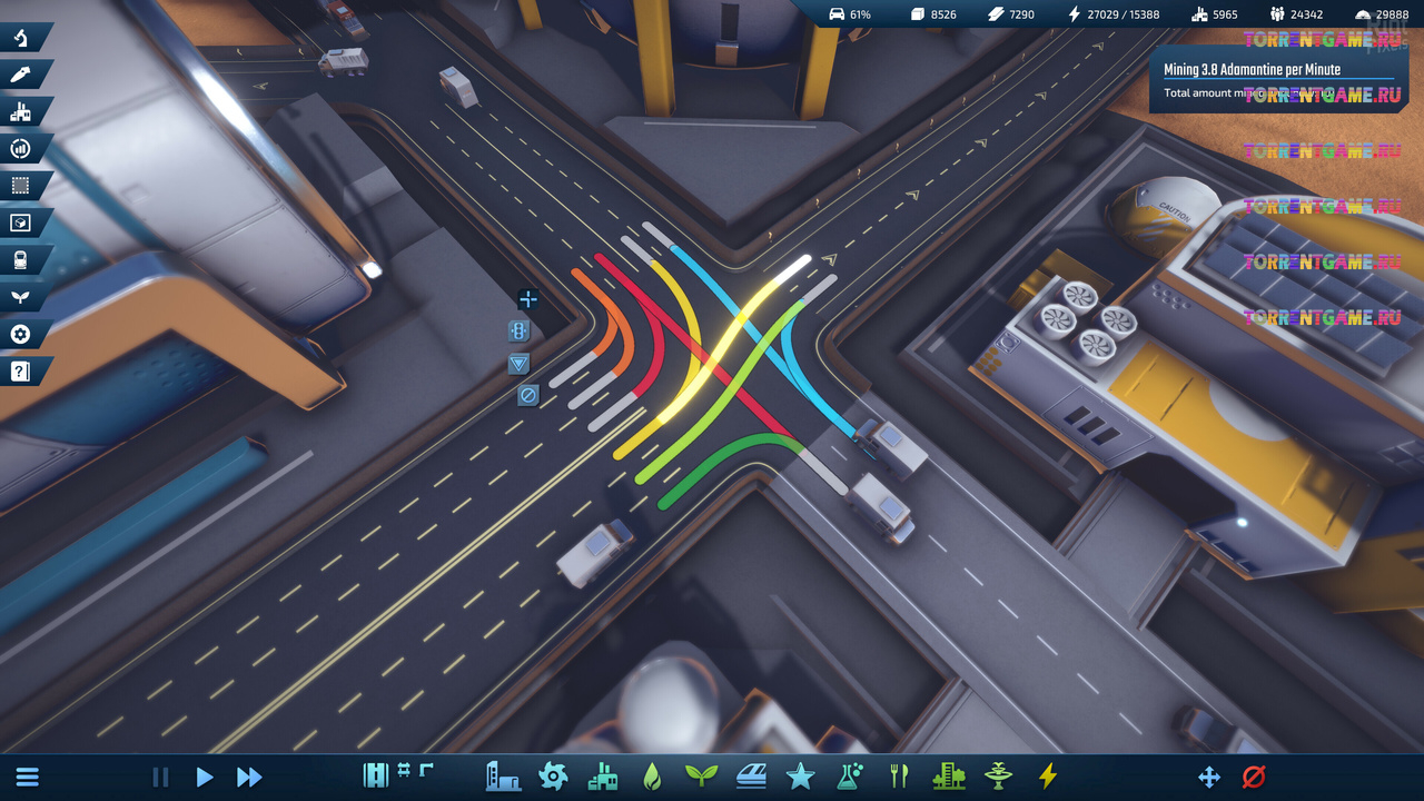 Инфрапространство имитирует каждый. отдельный. автомобиль. Каждый ресурс, который вы когда-либо производили, должен быть доставлен на завод для переработки, а каждый продукт должен попасть в среду обитания для потребления. Ваша дорожная сеть может справиться со многим, но без вашего контроля она в конечном итоге остановится и утонет в пробках. Стройте шоссе, кольцевые развязки и многополосные дороги, чтобы обеспечить непрерывное биение производственного сердца города.