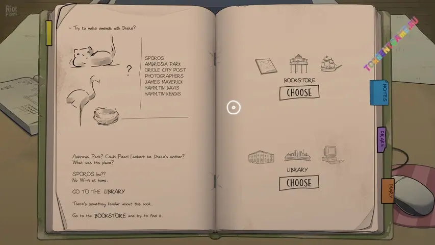 Действие игры разворачивается в Ориол-Сити, богато детализированном и прекрасно иллюстрированном месте, с замечательными персонажами и секретами, которые предстоит раскрыть. Фрэнк и Дрейк должны исследовать это окружение, решать головоломки и находить подсказки, которые помогут им найти ответы, которые они отчаянно ищут, в их беспокойном прошлом. Хотя они должны работать порознь, их судьбы переплетены и зависят от доверия и дружбы, которые они создают вместе.