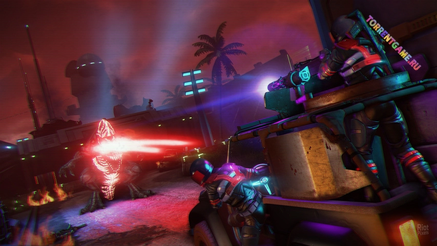 Ощутите все клише видения ядерного будущего эпохи VHS, где сталкиваются киборги, кровавые драконы, мутанты и Майкл Бин (Терминатор, Инопланетяне, Морские котики).