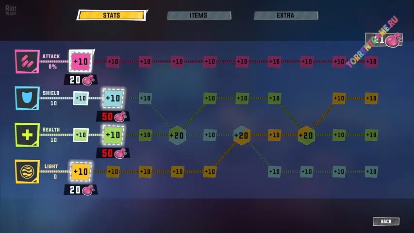 Собирайте "Слизь", сброшенную мракорами после их поражения – это станет валютой, которую вы сможете использовать в банке. С "Слизью" в банке вы можете продвигаться по уровням деревьев и становиться сильнее с каждым забегом. Правильно, защитник… Смерть - это еще не конец для тебя! (По крайней мере, так нам велели вам сказать. Просто иди и защищай землю).