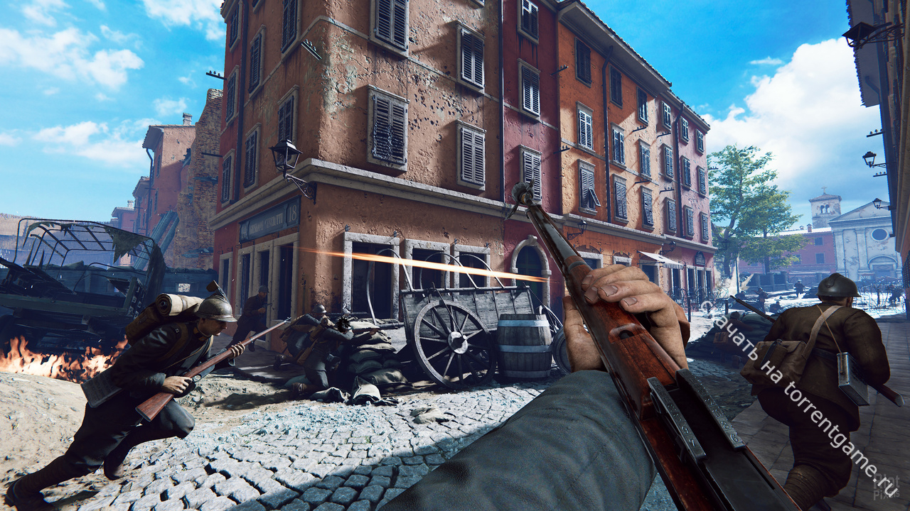 Новый режим наступательной игры перенесет вас прямо в эпицентр ключевых исторических наступлений на итальянском фронте. Ведите атаку по потрясающим итальянским пейзажам, выбирая свой путь к победе – прокладывайте пути через колючую проволоку, обходите врагов с фланга, следуя горными тропами, или управляйте минометом, чтобы пробить себе путь. Создавайте динамичное поле боя, укладывая мешки с песком и проволоку, устанавливая ящики с боеприпасами, устанавливая окопные перископы или снайперские щиты и многое другое.