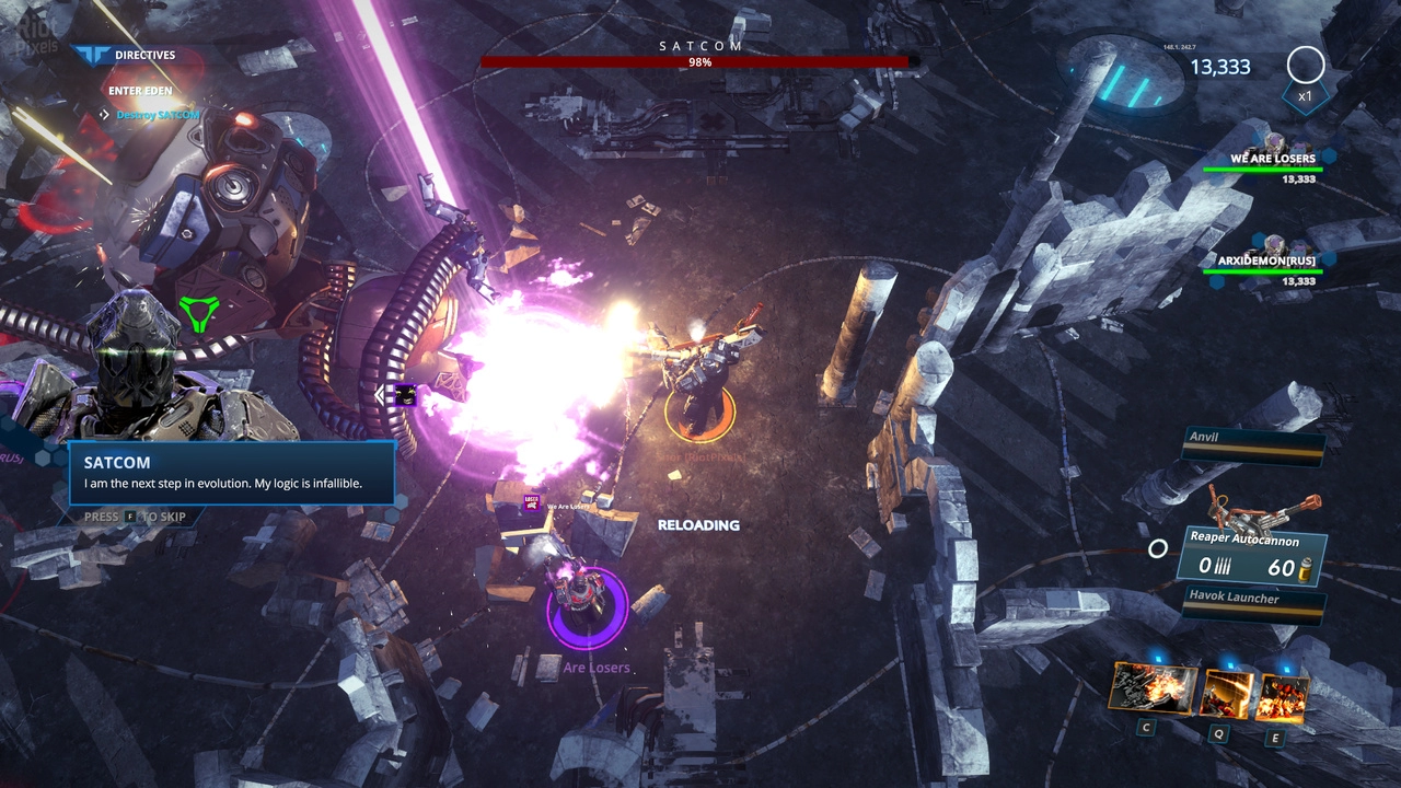 Возьмите под свой контроль одно из трех механических шасси – Hex, Vanguard или Catalyst – чтобы победить разумных механических врагов.