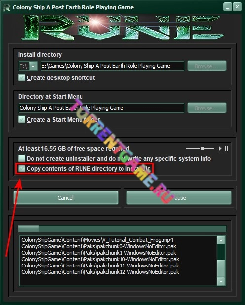 - Установить галочку о копировании лекарства в установщике Rune, или скопировать содержимое папки Rune с образа в папку с установленной игрой.