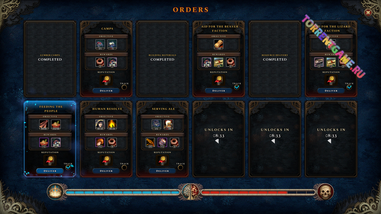 Лисы, бобры и ящерицы стоят бок о бок с людьми и гарпиями в борьбе за выживание. Используйте сильные стороны каждой группы, уравновешивая их различные потребности, от жилищных и кулинарных предпочтений до вкуса к роскоши и отдыху. Будете ли вы изготавливать плащи, варить эль и печь пироги, чтобы поднять боевой дух перед лицом гнетущей враждебности леса, или вы будете отдавать предпочтение потребностям одного вида перед другим, чтобы быстрее действовать в интересах Выжженной королевы?