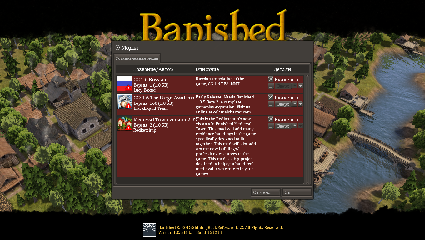 Banished v1.05B [RUS]+ Colonial Charter 1.06 TFA + Newmedievaltown 2.02 / Изгнанники + Колониальная Хартия 1.06 TFA + Новый средневековый город