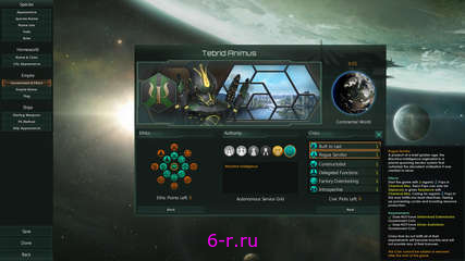 Прославьте свое имя во всем космосе, создав галактическую империю; колонизация отдаленных планет и интеграция инопланетных цивилизаций. Будете ли вы расширяться через войну в одиночку или пойдете по пути дипломатии для достижения своих целей?