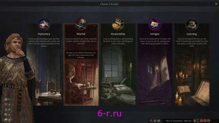 - Adopt one of five different lifestyles, perfecting your skills in military strategy or kingdom management.