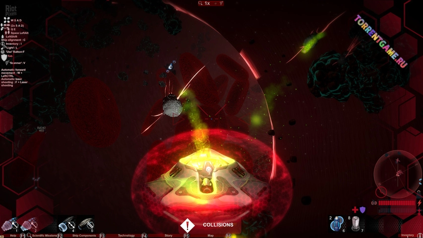 Внутри человеческого тела вы можете найти разбившиеся корабли, пилотируемые искусственным интеллектом из предыдущих миссий. Эти затонувшие корабли могут содержать ресурсы, специальные предметы, улучшенное оружие и апгрейды кораблей, полезные для вашей миссии и выживания.
